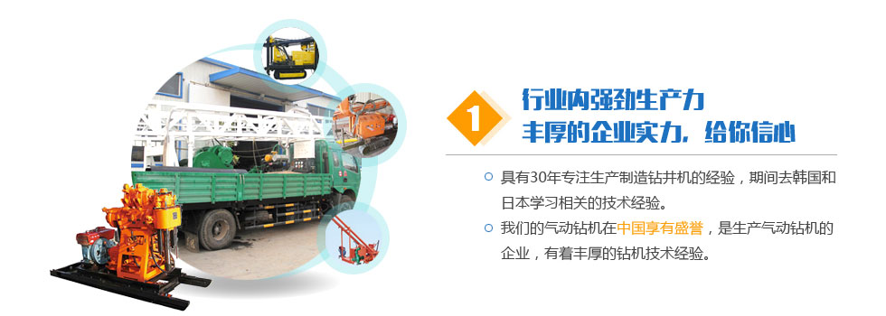 客戶共創(chuàng)雙贏。堅(jiān)持科技先導(dǎo)、質(zhì)量第一、信譽(yù)第一。讓我們用真誠的智慧共同締造事業(yè)的成功。讓我們用真誠的智慧共同締造事業(yè)的成功。希望與您的合作,能為我們的雙方共添輝煌。經(jīng)營宗旨:質(zhì)量求生存,信譽(yù)樹品牌,價(jià)格贏打井設(shè)備市場,創(chuàng)新圖發(fā)展。我們將以一流的技術(shù)換取您的信賴和欣慰。公司以人為本,廣納天下人才,技術(shù)力量雄厚。公司堅(jiān)持以人為本,以優(yōu)取勝,精誠服務(wù),持續(xù)改進(jìn)的質(zhì)量方針和氣動(dòng)鉆機(jī)服務(wù)宗旨。真誠地與
