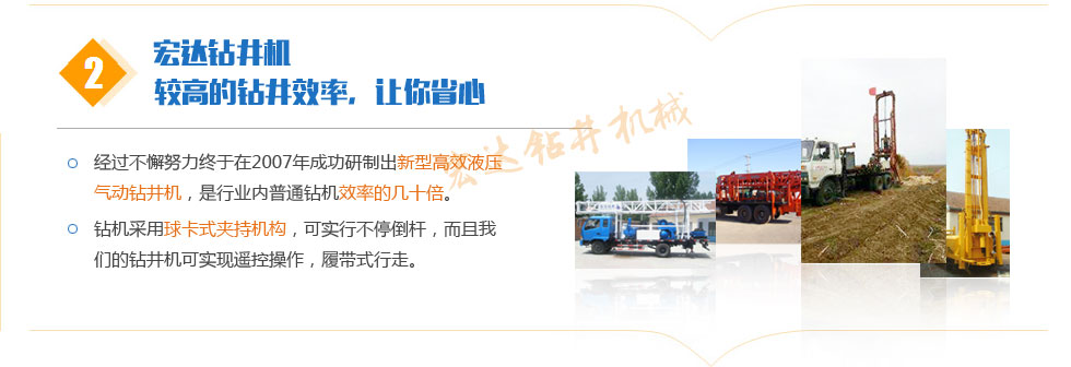 公司始終遵循"客戶第一、團(tuán)隊(duì)精神、長遠(yuǎn)利益、以人為本"的經(jīng)營理念。打井機(jī)公司擁有雄厚的技術(shù)力量。為廣大客戶提供熱情、周到、高標(biāo)準(zhǔn)的服務(wù)。公司擁有完整、科學(xué)的質(zhì)量管理體系。能為客戶提供滿意的服務(wù)是我們公司的榮耀。打造鉆井機(jī)設(shè)備精品、引導(dǎo)技術(shù)潮流是我們永久的追求。